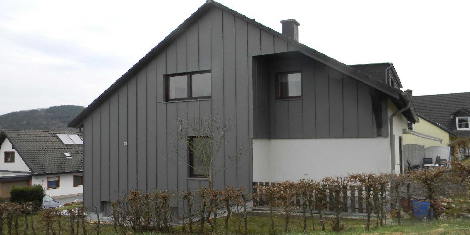 Wir, die Dachdeckerei Schäwe, haben uns insbesondere auf die hochwertige „vorgehängte hinterlüftete Fassadengestaltung“ (VHF) spezialisiert. Diese besteht aus folgenden 4 Teilen:
